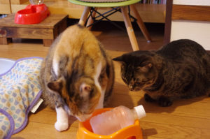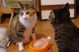 早速水を入れたペットボトルを凍らせ、飲み水を冷やしてあげると…、