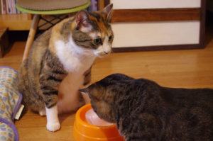 怖い思いをして帰ってきたフジをシマが「シャー!」やるので