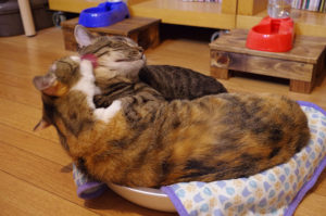 エアコンは2匹とも好きではなく、つけるとすぐ別の部屋に行ってしまいます。
