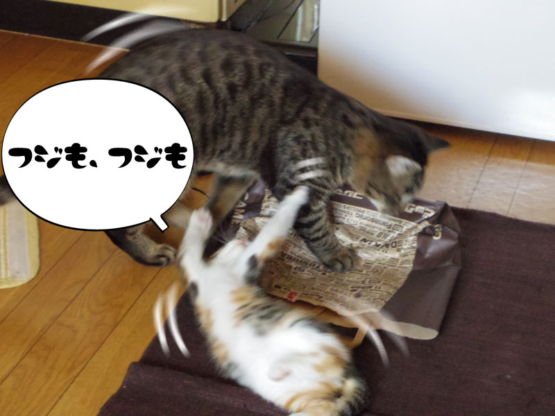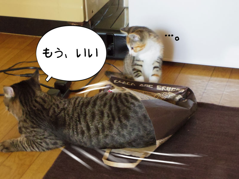 そんな一人遊びをしているシマの姿が非常にかわいらしいと眺めている飼い主ですが…、