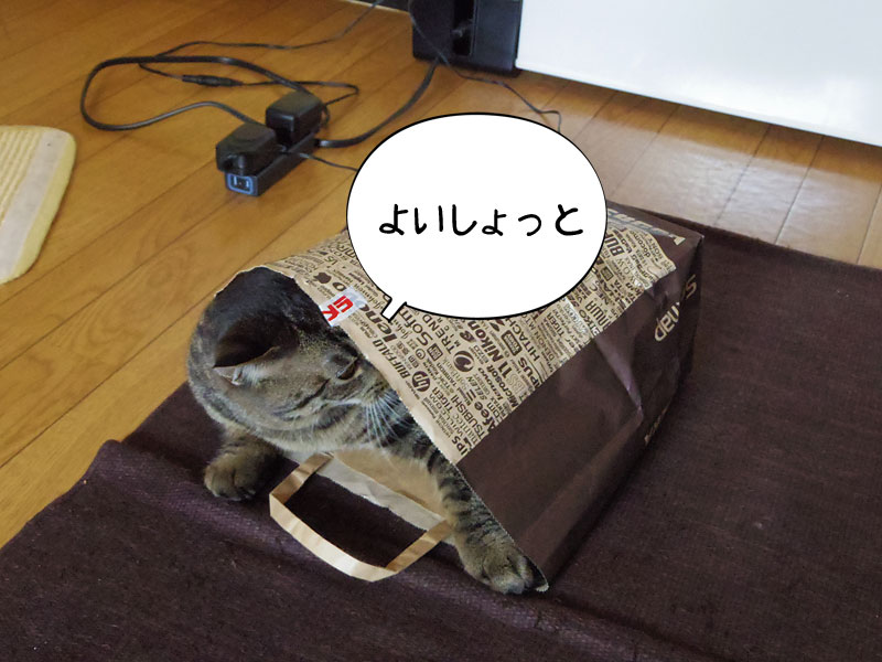 シマに限らずほとんどの猫はダンボールや紙袋の匂いが落ち着くらしく、