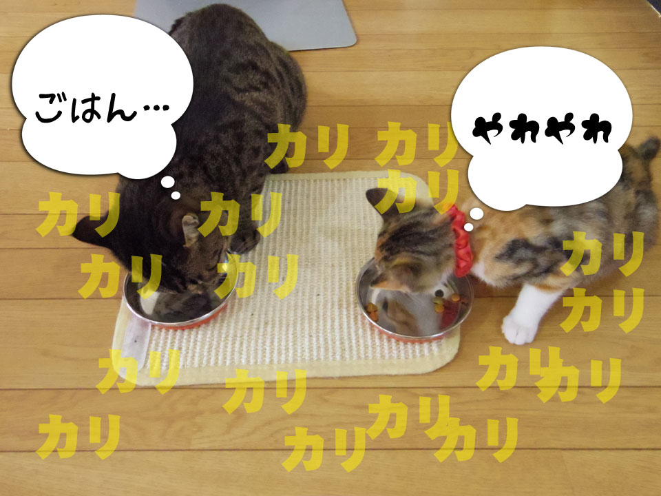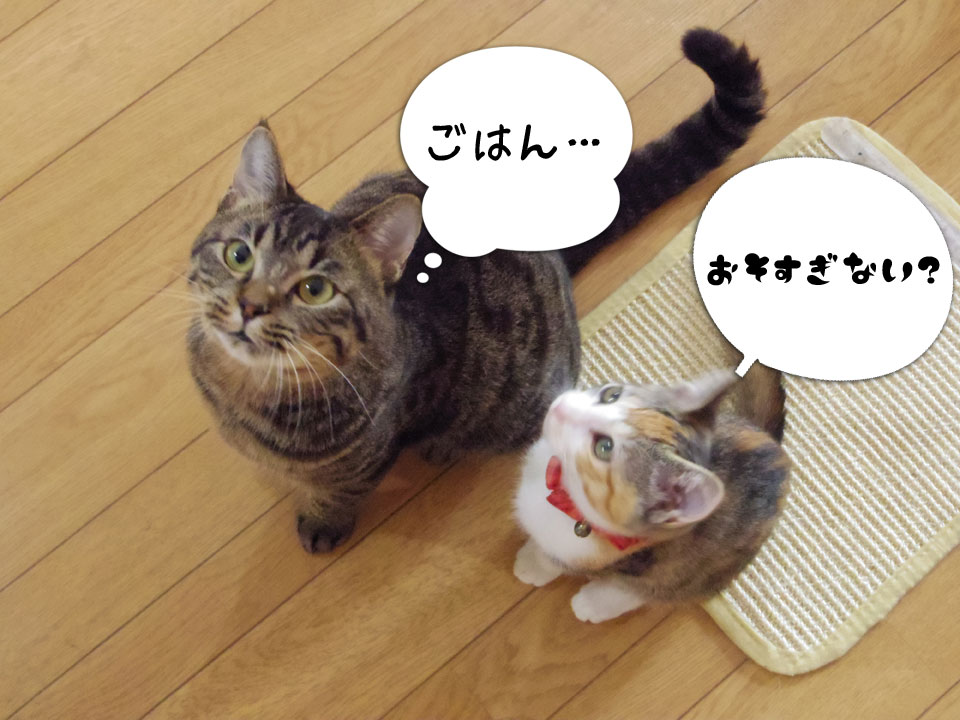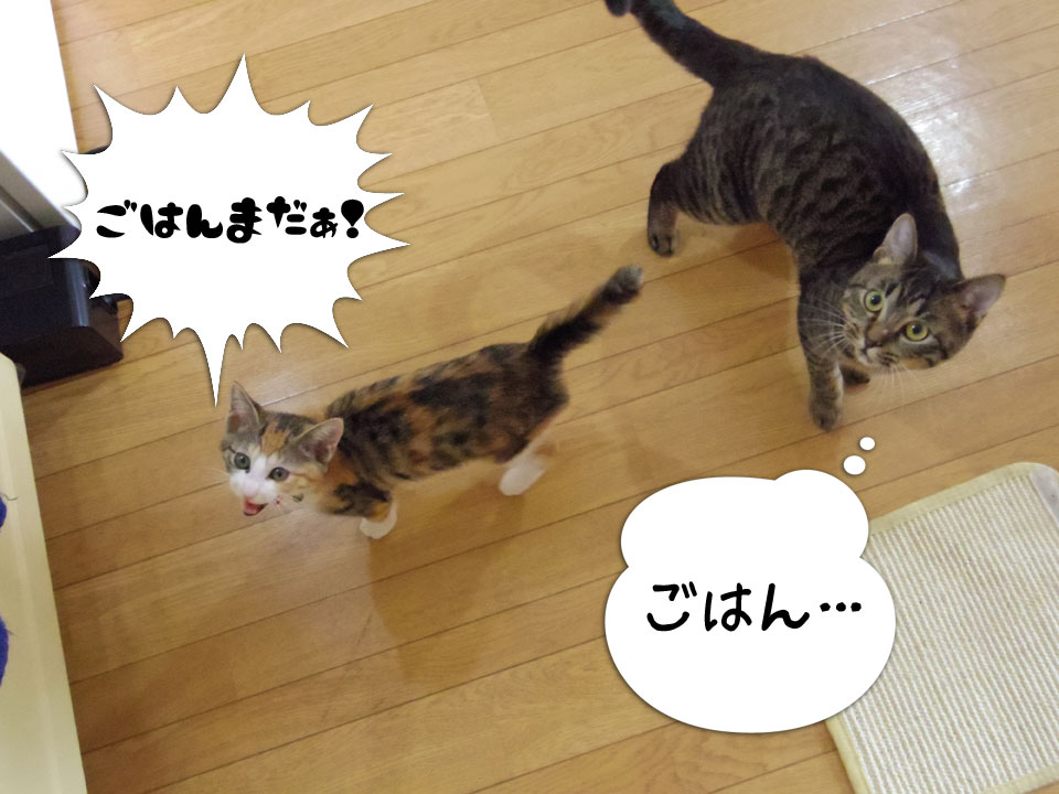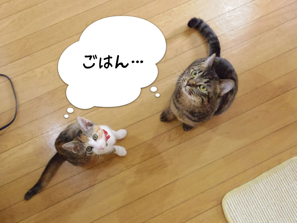 猫達が朝ご飯催促のアンサンブルを奏でています。