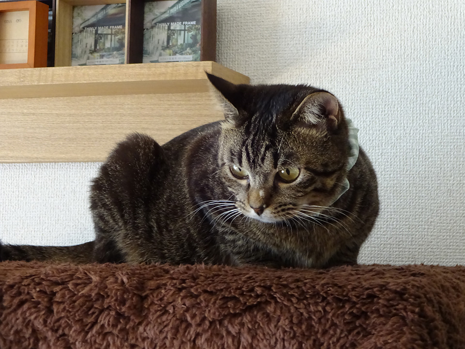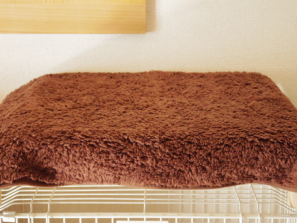 シマの寝床にも毛布を一枚追加しました。