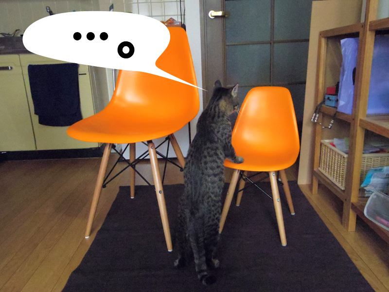 発注後、コドモ用があるのに気付き、結局ふたつのイスを発注しちゃいました。