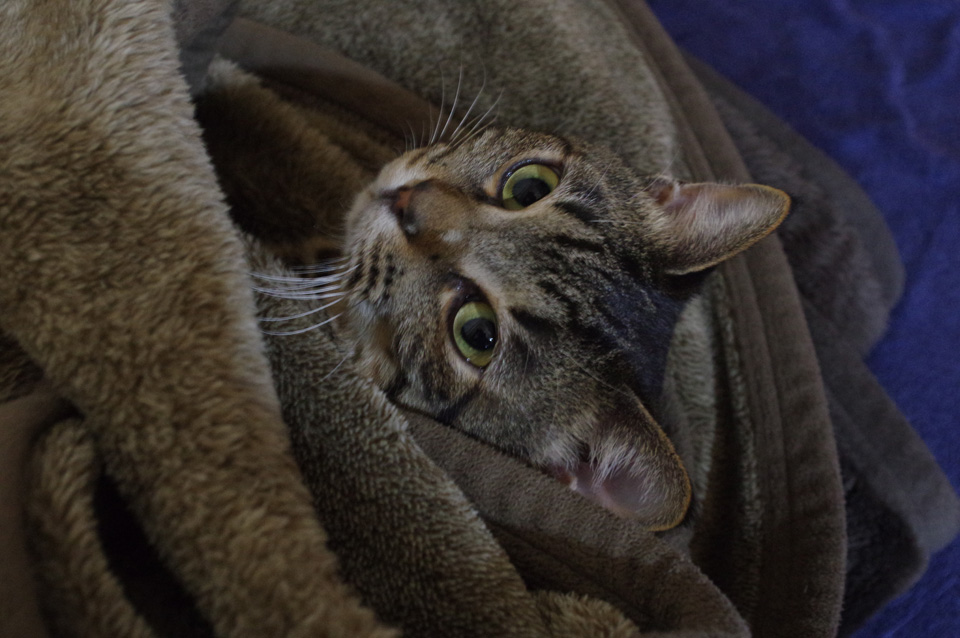 シマは毛布から出てこなくなるか、