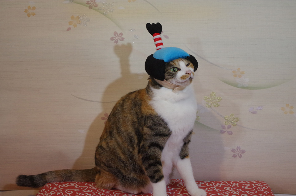 あけましておめでとうございます。 これ以上、サルの似合う猫はいません、 というくらいバッチリ決ま